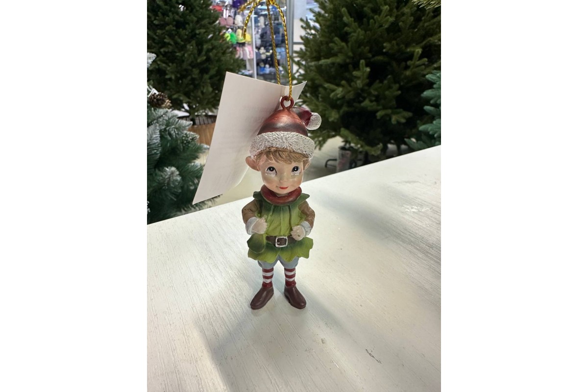 Фигура новогодняя Эльф с подвесом 3,5x4x9 см