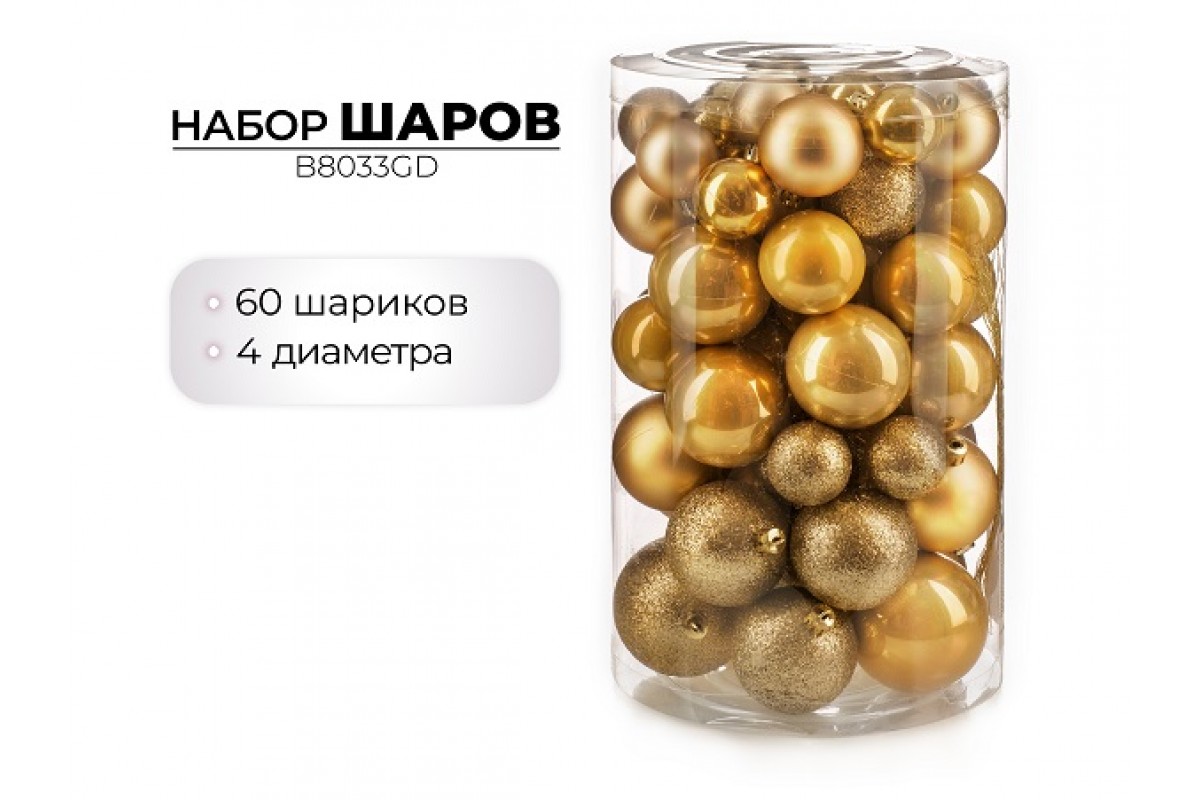 Набор новогодних шаров, 60шт, золото