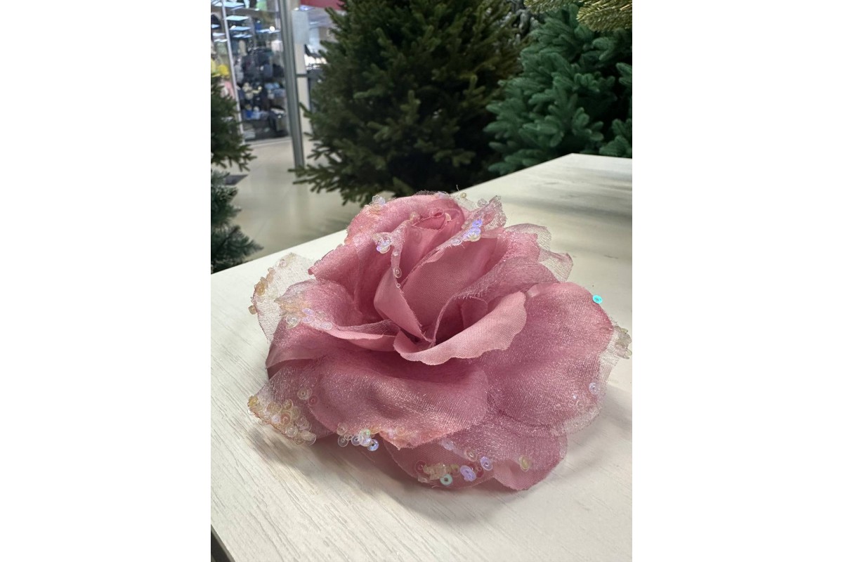 Фигура новогодняя Цветок 12 см на прищепке, нежно-розовый