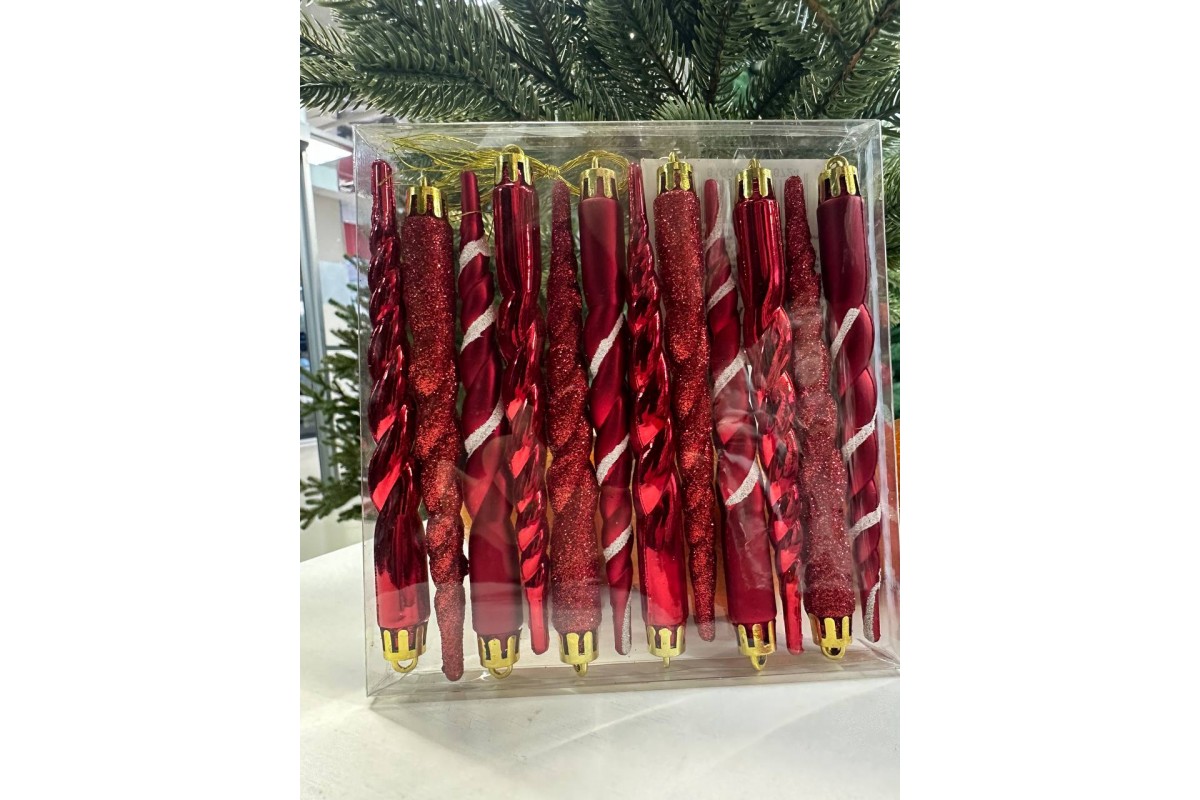 Набор фигур новогодних Сосульки Красные 12 шт уп