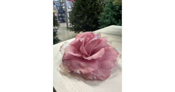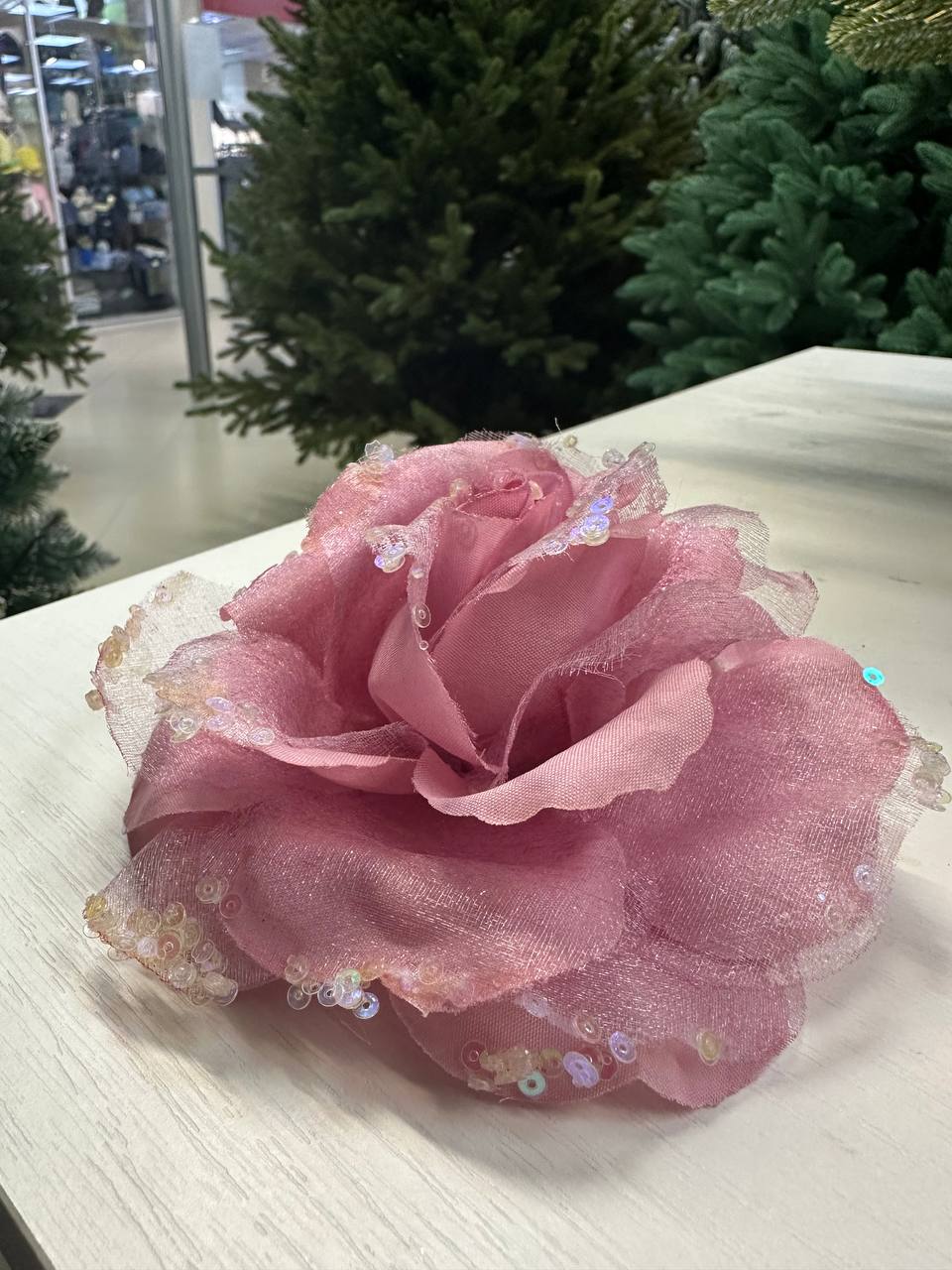 Фигура новогодняя Цветок 12 см на прищепке, нежно-розовый
