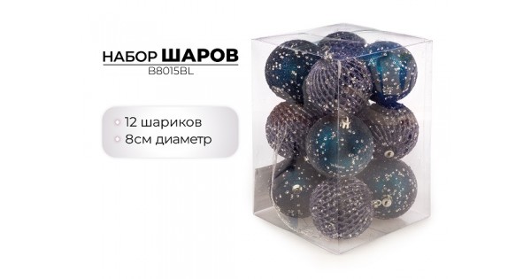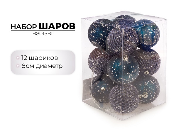 Набор новогодних шаров 8см, 12шт, синий