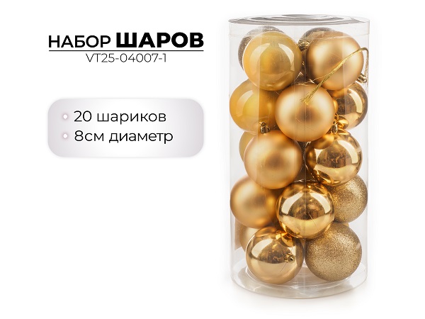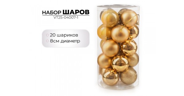 Набор новогодних шаров, 8см, 20шт, золото