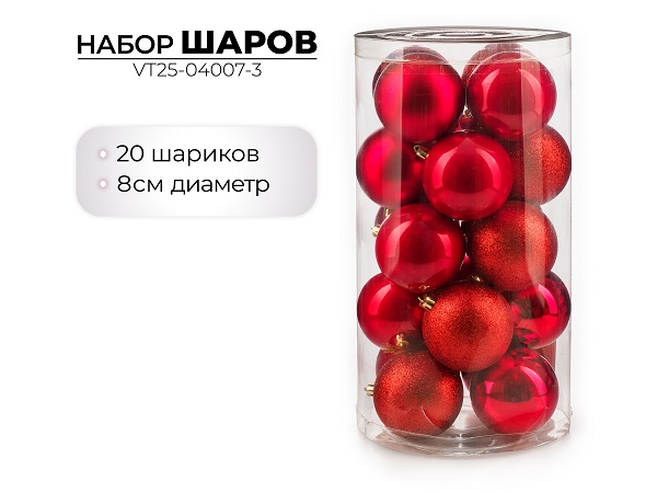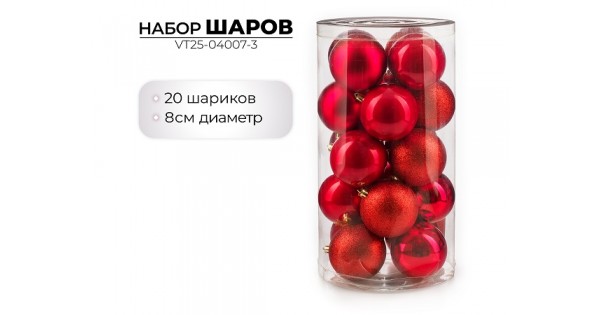 Набор новогодних шаров, 8см, 20шт, красный
