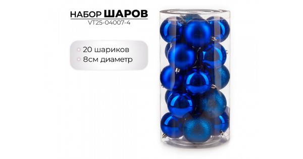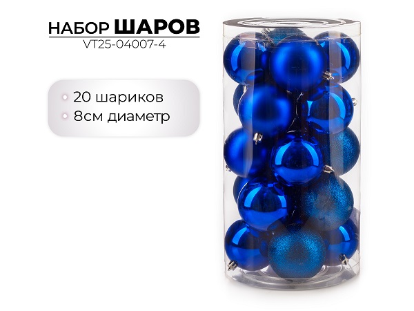 Набор новогодних шаров, 8см, 20шт, синий