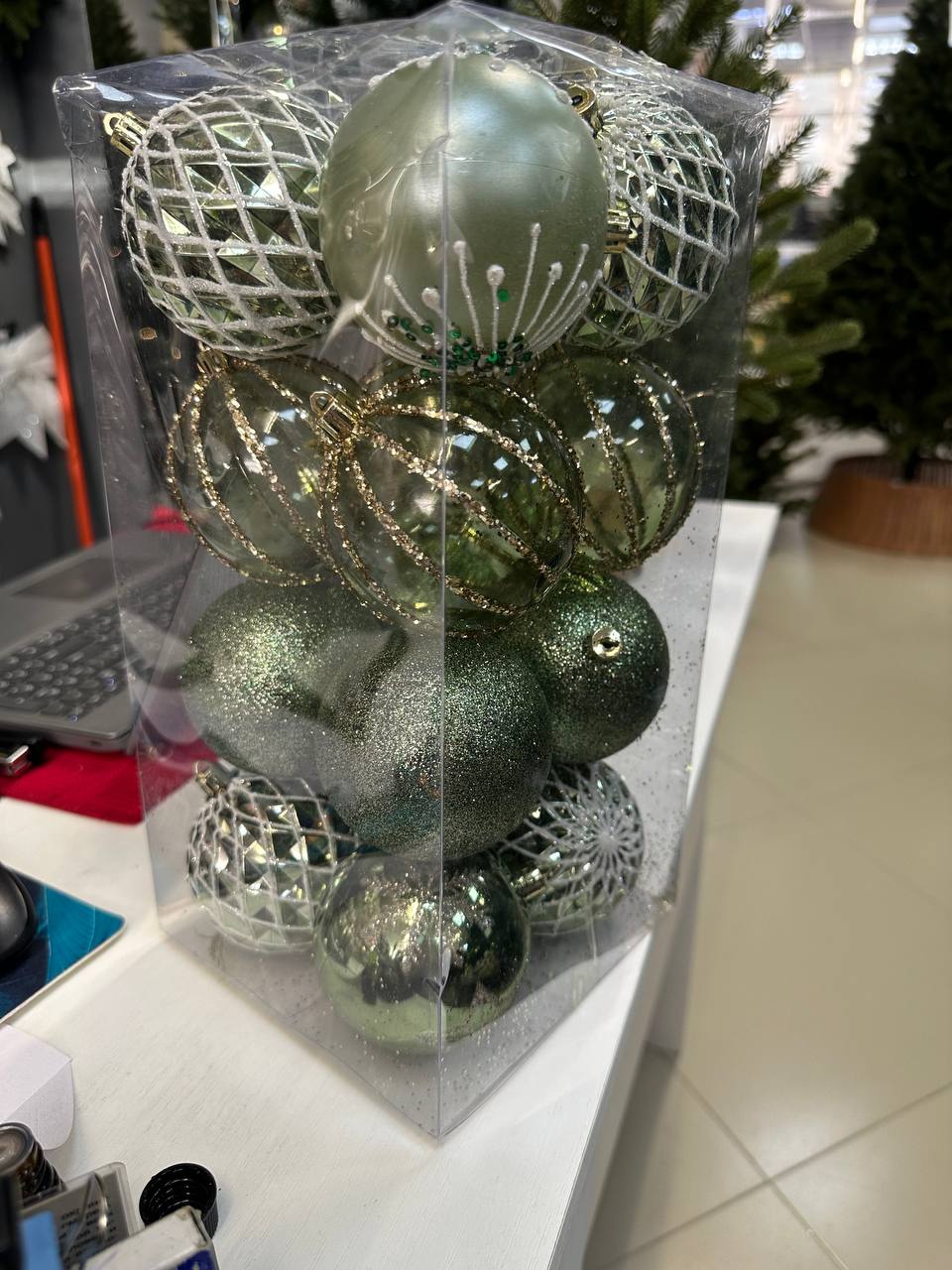 Набор шаров Ассорти с зеленым 6 шт