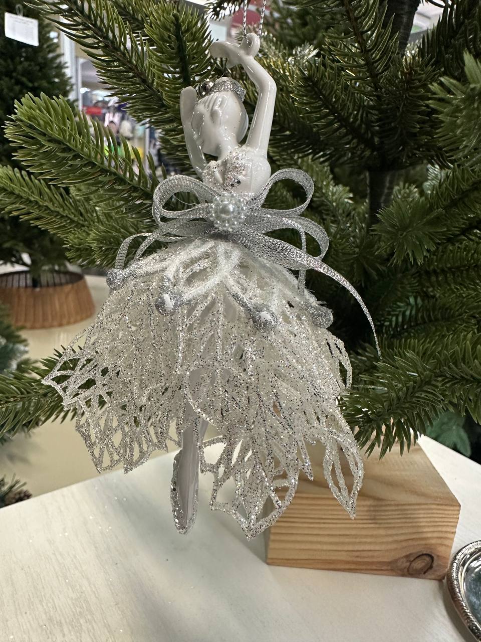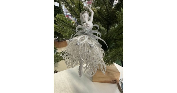 Украшение новогоднее подвесное Балерина в бело-серебряном платье 16 см
