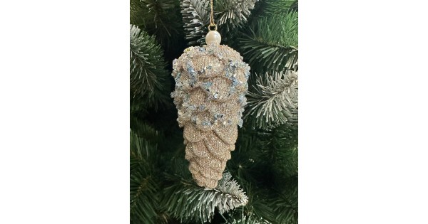 Украшение новогоднее елочное Шишка 14 см (с голубым)