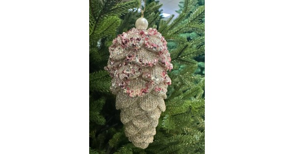 Украшение новогоднее елочное Шишка 14 см (с розовым)