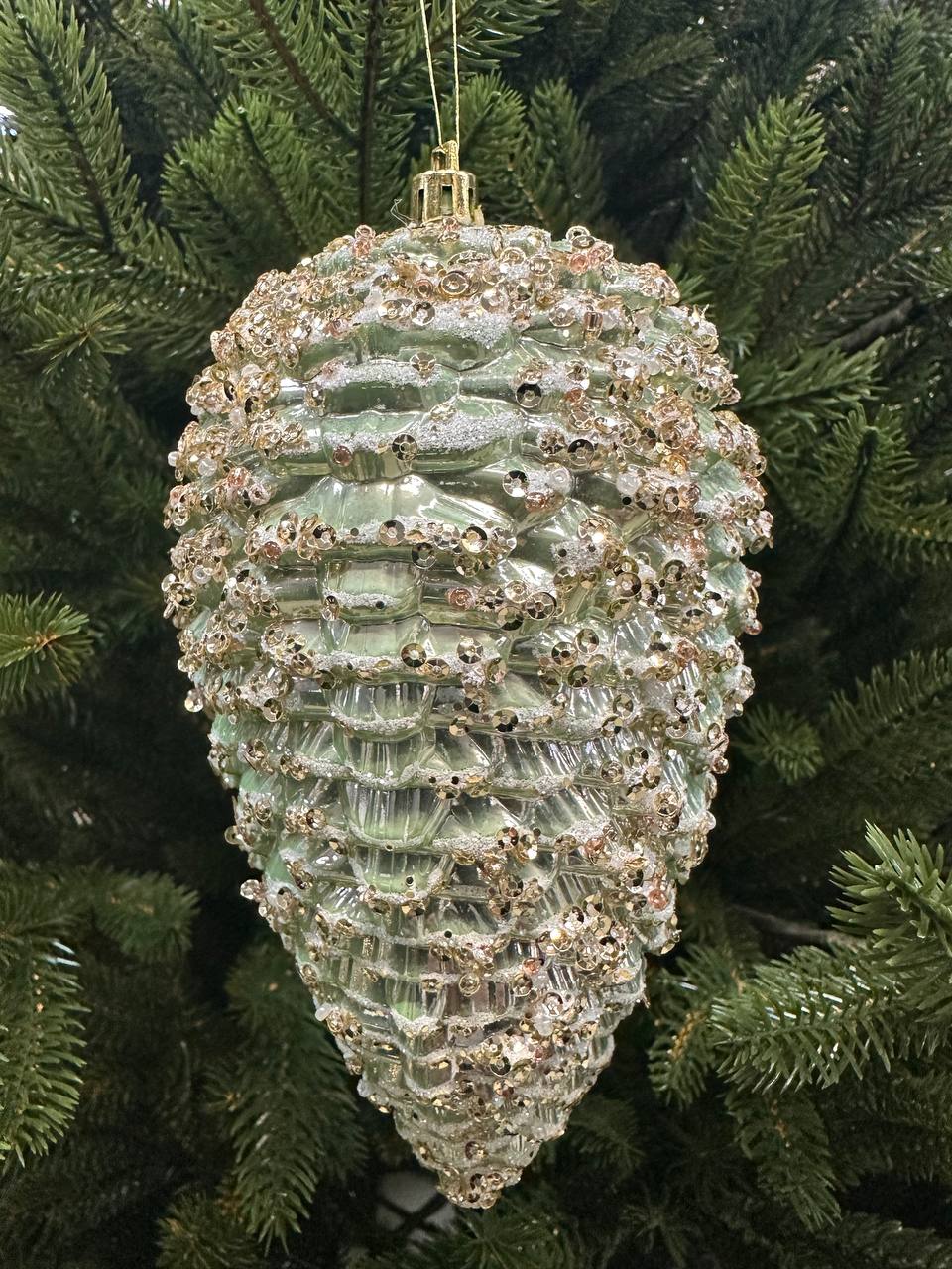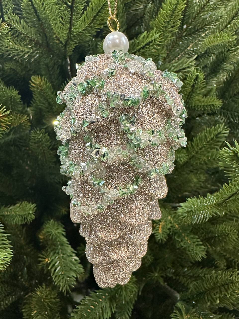 Украшение новогоднее елочное Шишка 14 см (с зеленым)